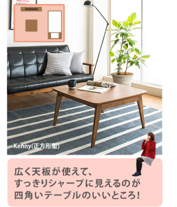 ▶コンパクトなお部屋に嬉しい・二人暮らしでちょうどいい75cm角 二人の距離が近くなる、冬はや